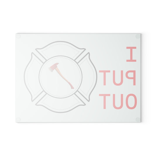 Glass Cutting Board – “I Put Out” Firefighter Axe Design