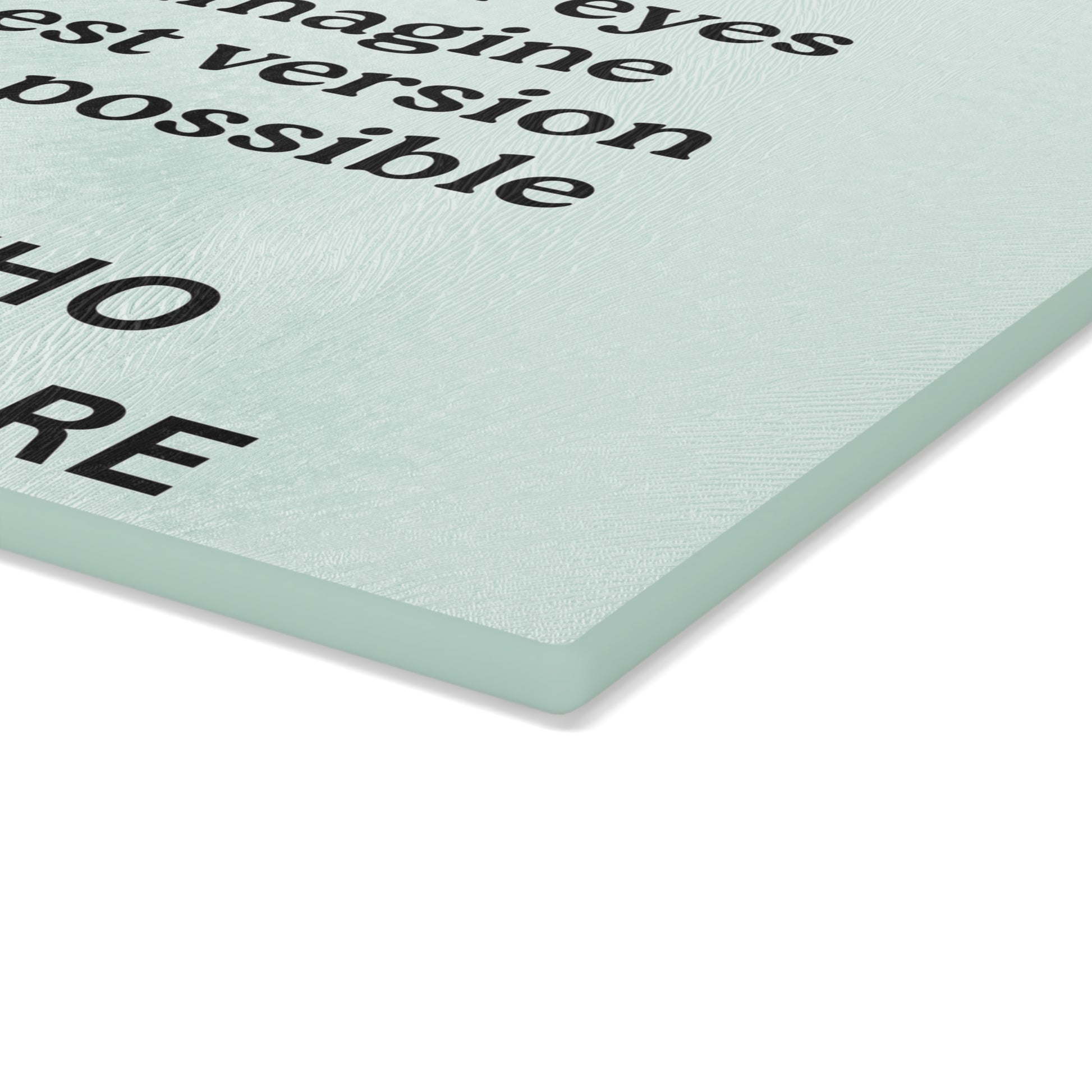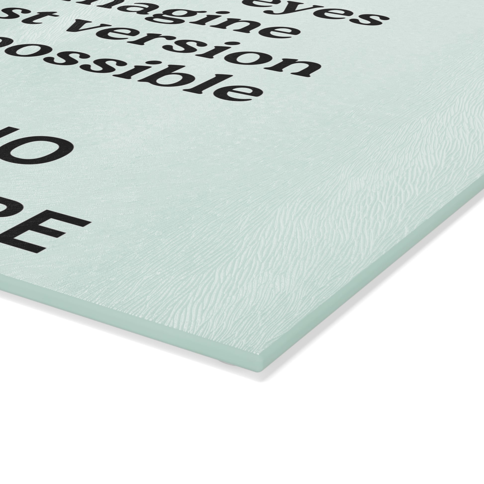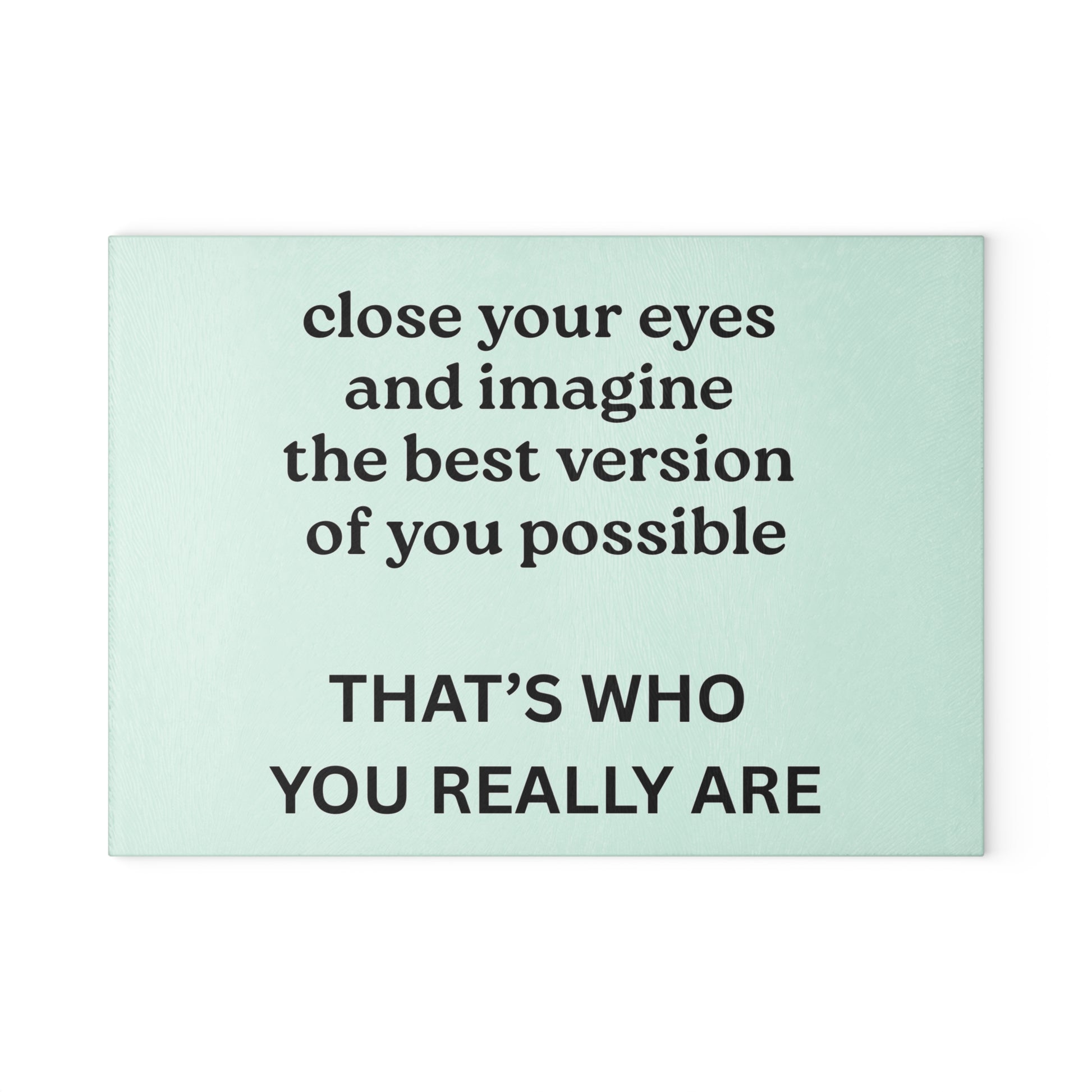 Transform your kitchen with this Glass Cutting Board featuring the uplifting message "Close Your Eyes and Imagine." Perfect for anyone who needs a daily reminder to dream big while prepping meals.