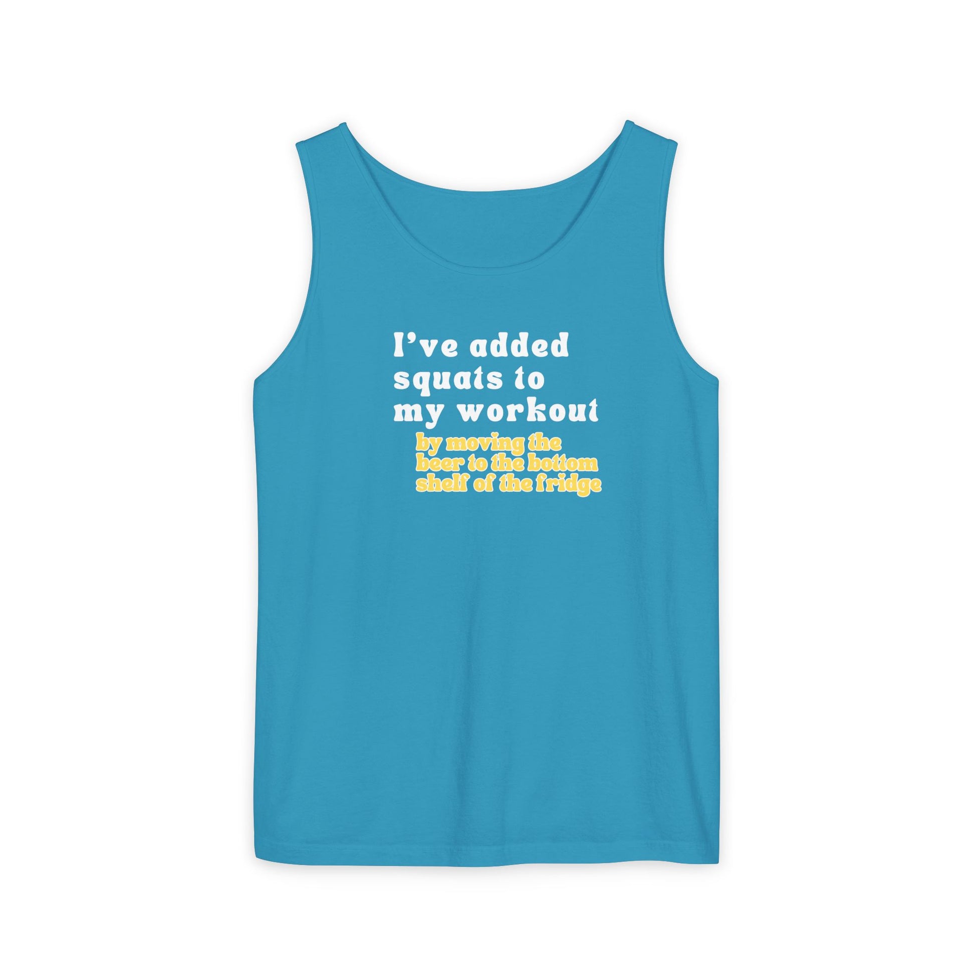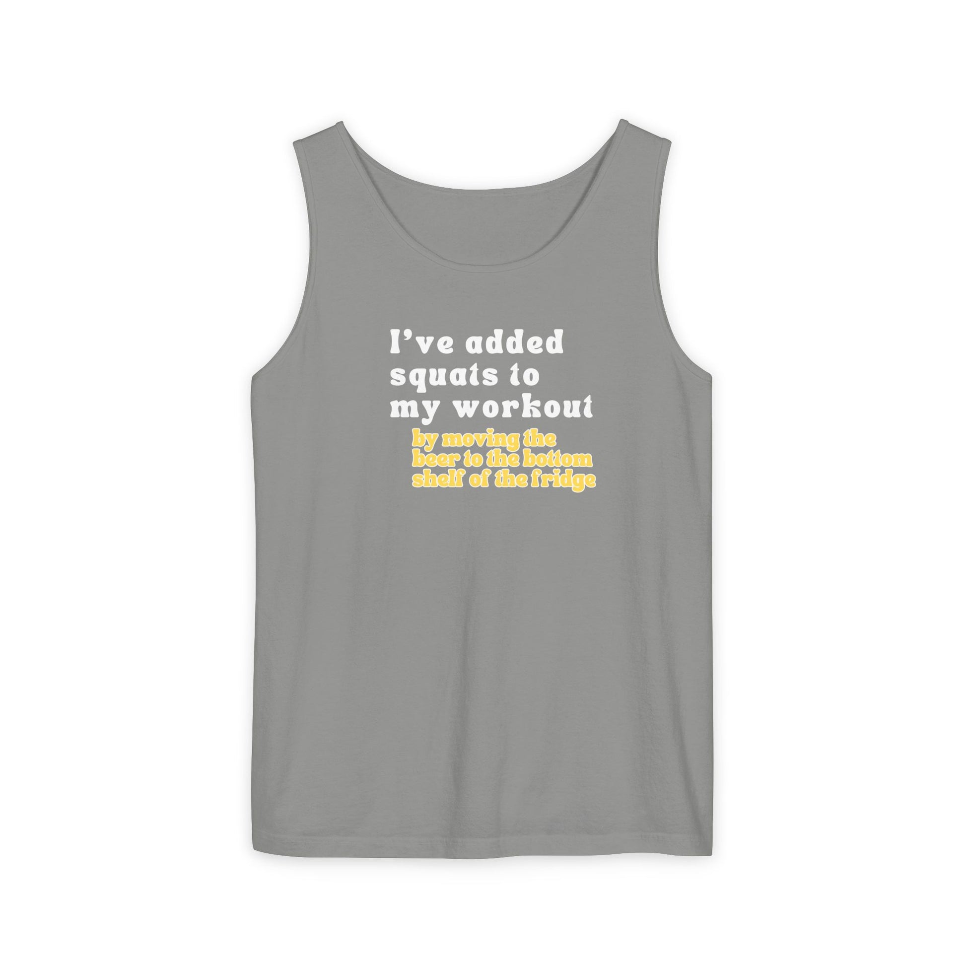 This unisex workout tank top brings the laughs with "I've added squats to my workout routine—mainly because I keep dropping things." Perfect for the gym-goer who doesn't take themselves too seriously but still shows up and puts in the work.